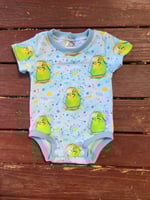 This bodysuit is lovingly made from cotton lycra Fabric which has been digitally printed. Our bodysuits can be made with different length sleeves so please send us a message if you would like something different from what is listed. Please note that pattern placement will be different and unique in each bodysuit. The crotch is closed with snaps for easy nappy changes and high quality ribbing is used for the cuffs/leg/neck bands. Made to order (2-3 weeks) unless listed as instock.